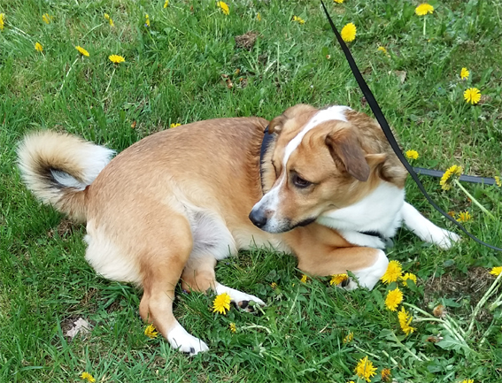 mutig mit seiner kleinen Gassigängerin los. Unterwegs hatte er viel Spaß – und Kuscheln auf der Wiese ist für ihn sowieso das Allerschönste! Auch unterwegs das Trinken aus dem plätschernden Flüsschen