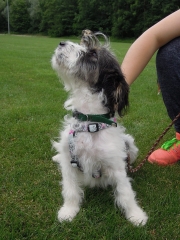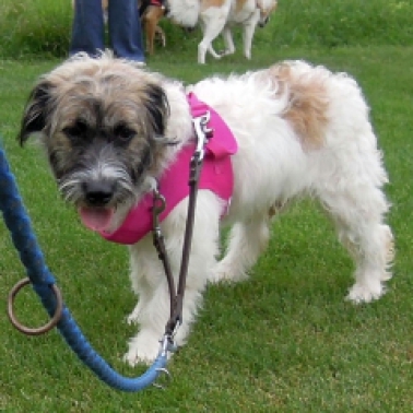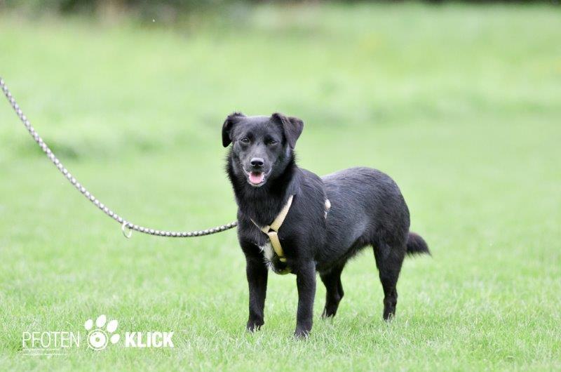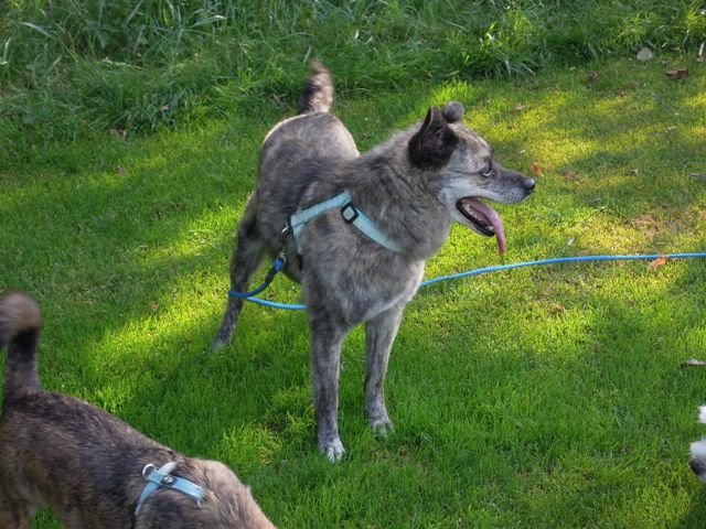 Nach anfänglicher Zurückhaltung gegenüber neuen Menschen und auch schon mal kurzem, unsicherem Gebell an der Leine ist sie jedoch absolut verträglich mit Artgenossen und auch in größeren