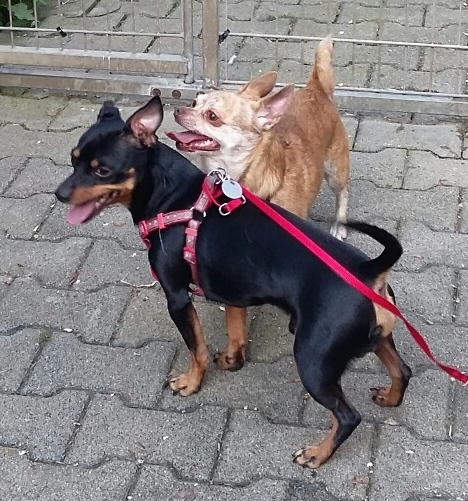 mutig und zu jedem Schabernack bereit. Kalle ist der vorsichtigste der drei. Beim ersten Gassigehen stellte es sich genauso dar: Little Joe akzeptierte schnell Geschirr und Leine und taperte dann