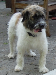 Lukas ist ein Jack-Russel-Mix, jedoch etwas hochbeiniger als seine Schwester Lilli. Geboren im Januar 2015 misst er z. Zt. 35 cm und wiegt 8 kg. Er ist ein aufgeschlossener, liebenswerter Junghund, der Menschen sehr liebt. Wie alle Jack-Russel (-Mischlinge) braucht er Bewegung und Beschäftigung, zunächst aber Erziehung, denn das Hunde-ABC beherrscht der kleine Mann noch nicht so ganz.