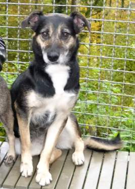 Dieser kleine Wirbelwind ist im Februar 2016 geboren, ca. 42 cm groß und wiegt ca.13 kg. Vor ihrer Vermittlung wird Miha noch kastriert. Als Junghund liebt sie es, mit ihren Kumpels herum zu toben. Wie ein Welpe muss sie eigentlich noch alles lernen, dafür sollte man ihr in einer Hundeschule Zeit geben. Mit ihrem freundlichen Wesen wickelt die kleine Mischlingshündin jeden ganz schnell um die Pfote. Bei evtl. sportlichen Aktivitäten ihrer neuen Menschen wäre Miha mit Sicherheit dabei, Kinder sollten schon etwas größer sein. Wenn es noch einen eingezäunten Garten gäbe, wäre das Hundeglück vollkommen.