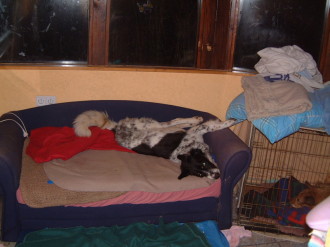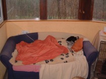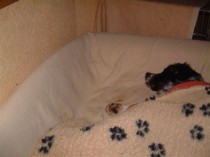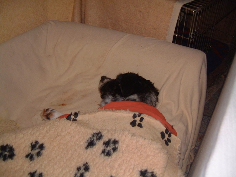 Hundekiste, steckte alle Decken in einen Müllsack und putzte alles weg um mir wieder ein sauberes Bettchen zu machen.
