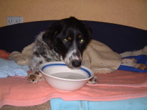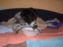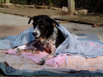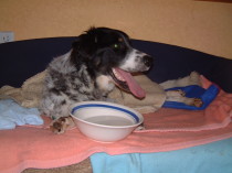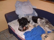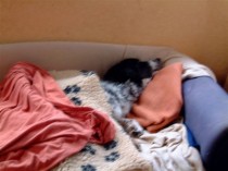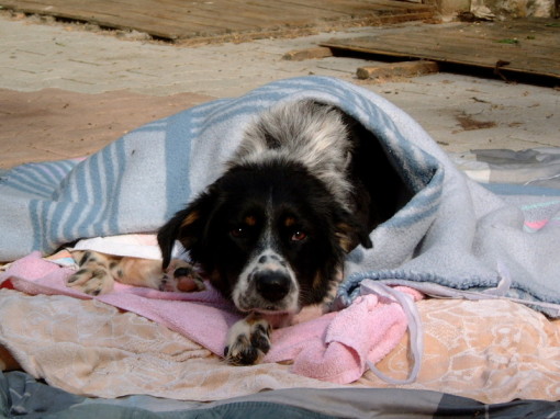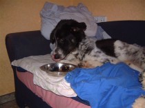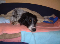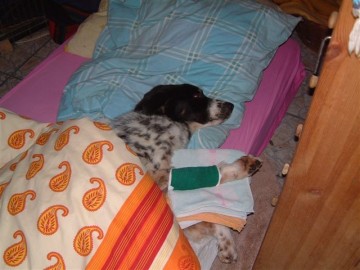 Die Nacht war furchtbar, ich bekam große Bauchschmerzen und hatte Durchfall. Nun liege ich da in meinem Hundekorb eingebettet in Wolldecken und da ich mich ja nicht