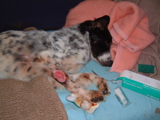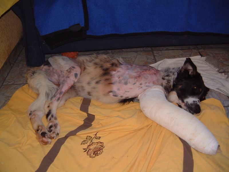 ausgetrocknet. Dein rechtes Vorderbein hat man Dir um 180 Grad verdreht und eine großes offene klaffende Wunde.