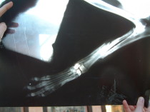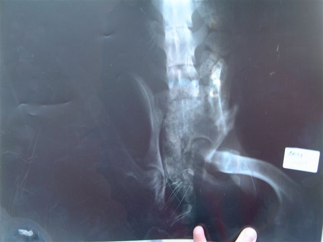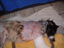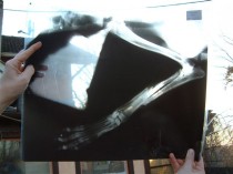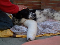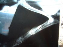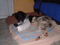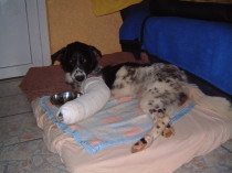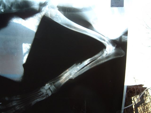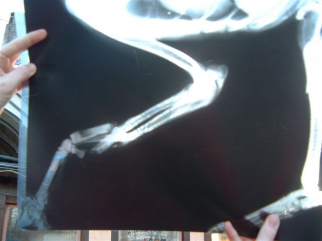 Als ich aufwachte, hörte ich die Tierärzte, wie sie mit PW gesprochen haben. Man hat mir die Platte am Ellenbogen gelassen, weil noch eine kleine Ecke nicht verwachsen ist. Der andere Teil ist gut