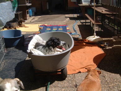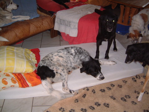 Meine Maus, ich denke jetzt ist der Zeitpunkt günstig das wir Dich nachts ins Wohnzimmer legen, wo Du dann auch bei den anderen Hunden schlafen kannst. Weist Du sie vermissen mich auch. Sie haben