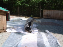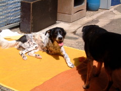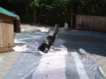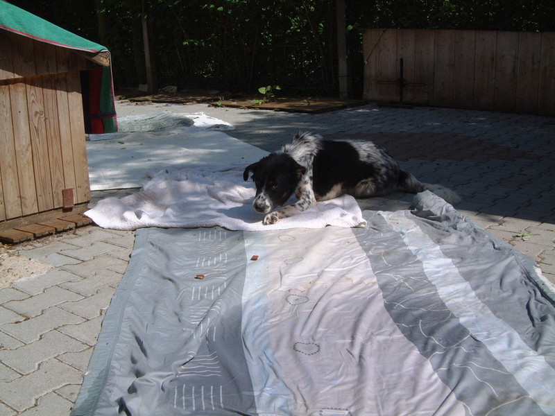 Mit einem Eimer Warmwasser, Shampoo und einem kleinen Handtuch hat sie mir nun mühselig die ganze Sch... aus dem Fell gewischt. Ich weis was sie denkt, sie hat große