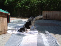denn nun sollte ich arbeiten, dabei bin ich doch noch ein Hundekind. Es macht mir viel mehr Spaß zu spielen, oder die Schuhe vor der Türe zu verschleppen. Es gibt zwar immer wieder ein Donnerwetter,