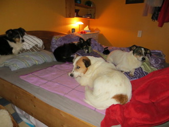 So kam er zu seinem Rudel zurück, war sofort wieder ganz der Alte und sichtbar glücklich, wieder Bewegung zu haben, denn das Liegen unter dem Bett hatte seinen Mukis nicht gut getan!
