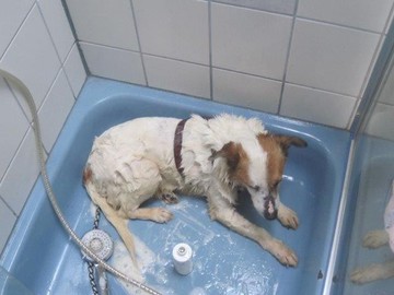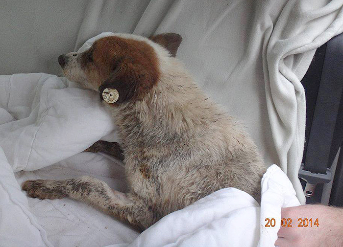 Wie Tausende anderer Hunde, wurde Pelle – so hieß dieses Häufchen Elend – von den städtischen Hundefängern auf brutale Weise eingefangen und nach Botosani in die öffentliche Auffangstation für Straßenhunde gebracht, wo er mit den anderen Hunden eingepfercht „leben“ sollte. Im Durchschnitt befinden sich in einem solchen Shelter ca. 1000 Hunde, und wenn es keinen Platz mehr gibt, droht man, sie zu töten. Viele Hunde sterben durch Beißereien, an Krankheiten, erfrieren oder verhungern und verdursten. Oder aber, sie werden tatsächlich auf bestialische Art und Weise ermordet. So wurde Pelle von anderen Hunden beim Kampf ums Futter attackiert und regelrecht zusammen gebissen. Die Hundefänger, die sich auch um die Hunde kümmern sollen und dafür Geld bekommen, interessieren die Hunde nicht mehr, wenn sie einmal in Gefangenschaft sind. Großartige Tierschützer vor Ort bitten jedoch unermüdlich jeden Tag um die Erlaubnis für ein paar Stunden bei den Hunden, um sie dann zu füttern. Dabei entdeckten sie Pelle. Er war so schwer verletzt, dass sie zunächst dachten, er sei tot. Sie holten ihn aus dem Zwinger und brachten ihn zum Tierarzt.