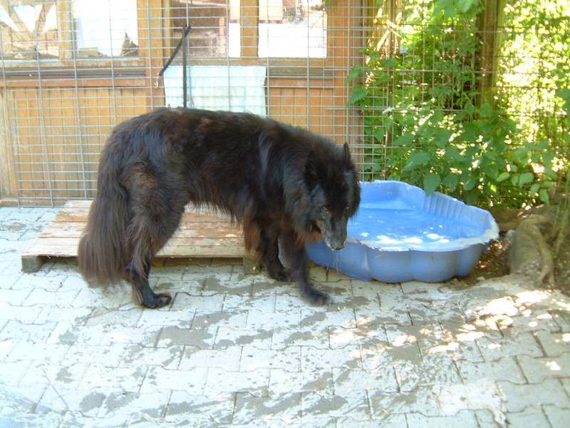 Plötzlich Freudengelächter, blicke aus meinem kleinen Loch, vielleicht darf ich mal wieder raus, um mir die Füße zu vertreten. Ja sie haben einen Strick dabei, der wird um den Hals gehängt, damit ich raus darf, ohne so einem Strick bin ich schon lange nicht mehr gesprungen, da war ich noch ein Hundebaby und jeder fand mich damals ach so süß. Aber das ist schon lange her.