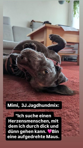 MIMI: * 9.2022 ca 45 cm Jagdhundmix, kastriert und Chip, hat eine angeborene Fehlbildung am linken Vorderlauf, sie rennt und läuft sehr gut damit. Die Hübsche ist  sehr verschmust und lebte mit anderen Hunden und Katzen bei ihrer Retterin.