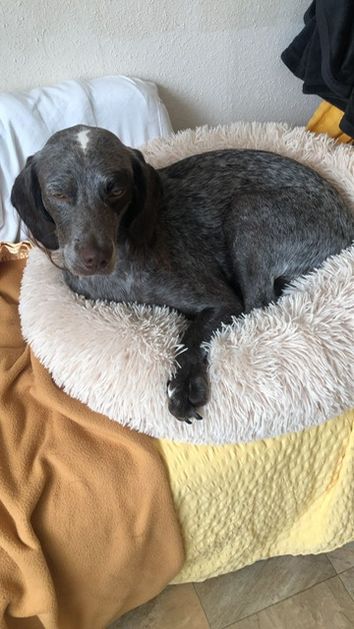 Rüde, kastriert, 6 Jahre, vermutlich Pointer-Mischling